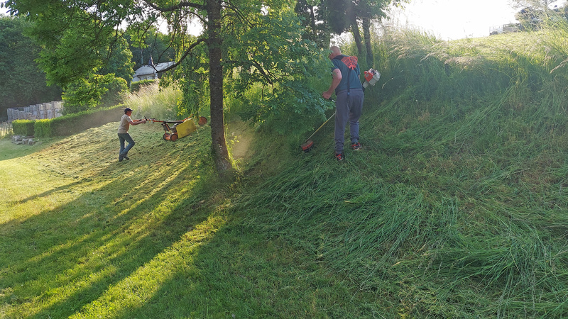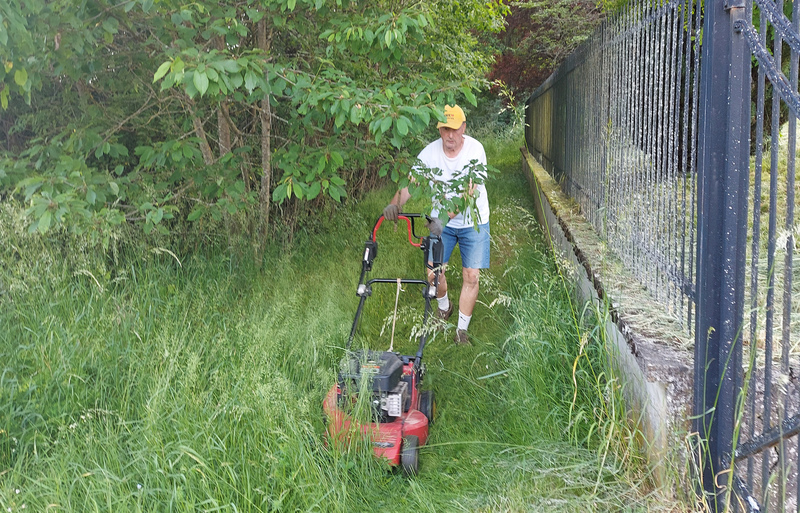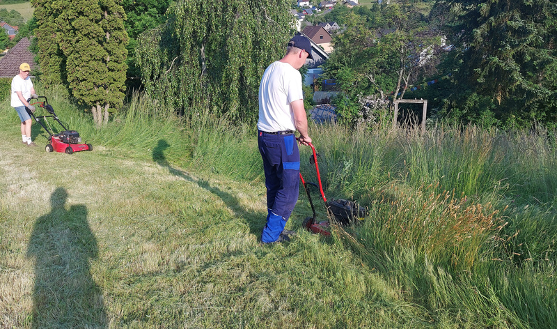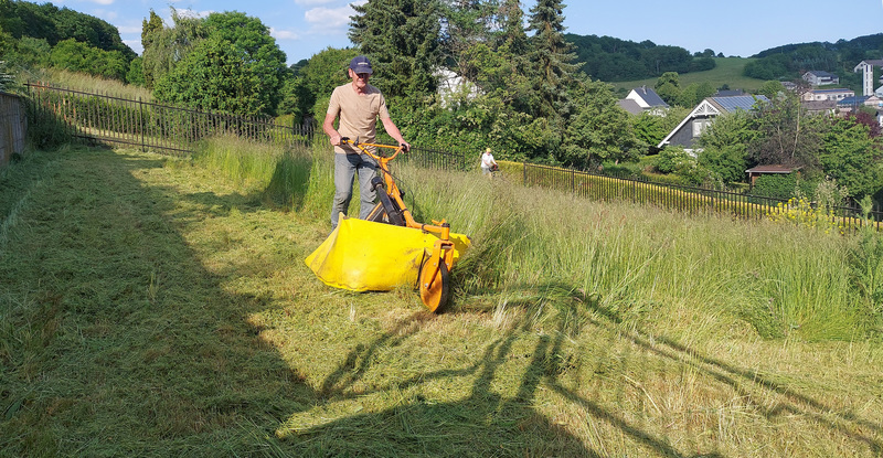 Durch die in diesem Frühjahr endlich mal wieder verstärkten Regenfälle wucherten unsere Grünflächen in einem Ausmaß, das die beiden vorangegangenen Jahre deutlich übertraf. Infolgedessen wuchs natürlich auch der notwendige Pflegeaufwand erheblich. Daher wurde der eine oder andere Arbeitseinsatz zur schweißtreibenden Angelegenheit, z. B. am Friedhof oder am Langweg zwischen Sportplatz und Streuobstwiese, was aber für den Teamgeist und Zusammenhalt der beteiligten Vorstandsmitglieder sehr förderlich war.