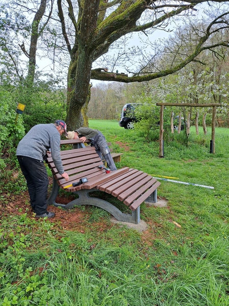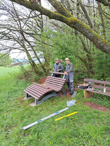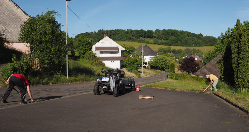 Daneben waren unsere Arbeitseinsätze bestimmt durch die üblichen Pflegearbeiten an den Grünflächen im Ort sowie an den Sitzbänken auf den Wanderwegen sowie der Ausbau der Befestigungsarbeiten auf dem Festplatz „Dalsbach“.